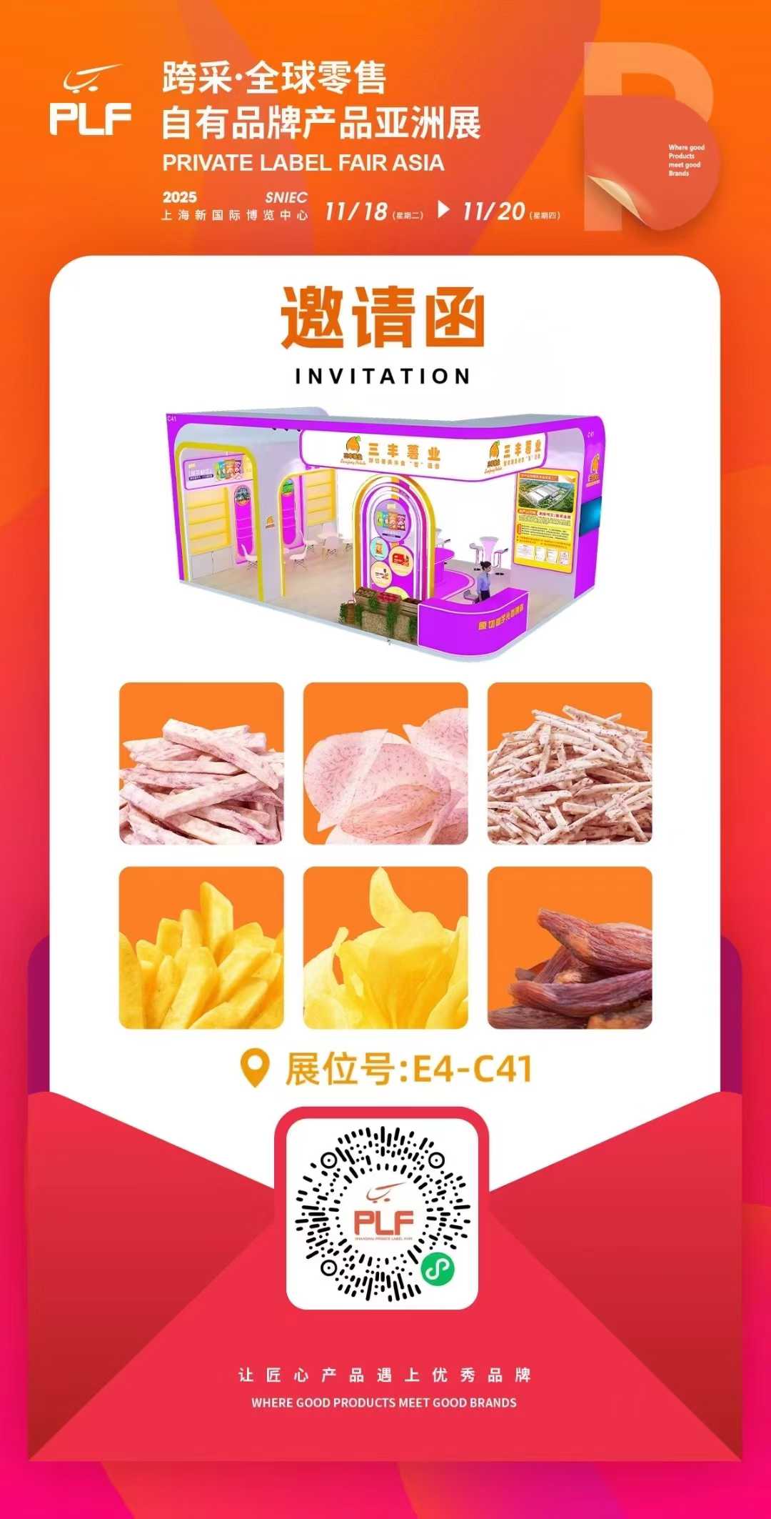 Từ ngày 18 đến 20 tháng 11, tại gian hàng C41, hội trường E4, Trung tâm Triển lãm Quốc tế Mới Thượng Hải. Chúng tôi chân thành chào đón quý khách đến tham quan và nếm thử!